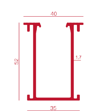 Ses "C" Series. Mini Rail Al. Profile 40X52mm, With Median Connection